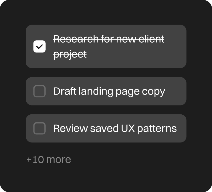 Good ideas don't act on themselves. Convert anything you've saved into a task and keep the momentum going.