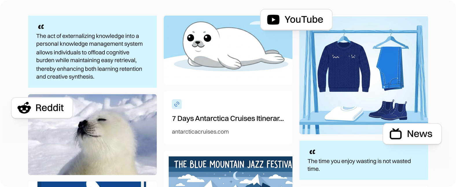 You read the article. You save the link. You forget both exist. Bookmarks are graveyards. Tabs close. Ideas vanish. There's no shortage of information, just no way to hold onto it.